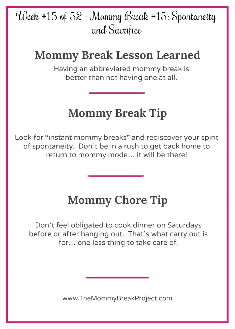 Week #15 of 52 - Mommy Break #15 of 52: Spontaneity and Sacrifice