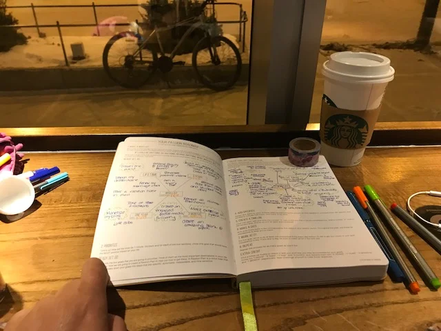Monday: One hour of me time, mind-mapping at Starbucks right before they closed. So worth escaping after being trapped at home all day while my 5YO and 7YO were bouncing off the walls.